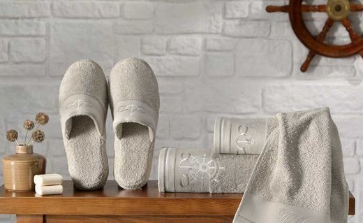 Набор из 3 полотенец с тапочками NAVY бежевый