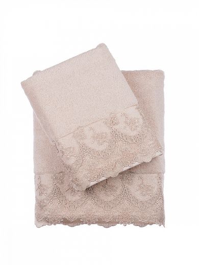 Набор из 2 полотенец с шелковым бордюром ROSELAND LUX кремовый