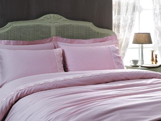 Сатиновое постельное бельё Евро, DIAMANT пудровое