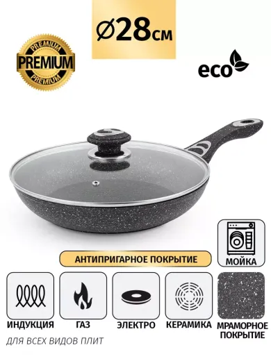 Сковорода с крышкой Royalty Line 28 см с мраморным покрытие