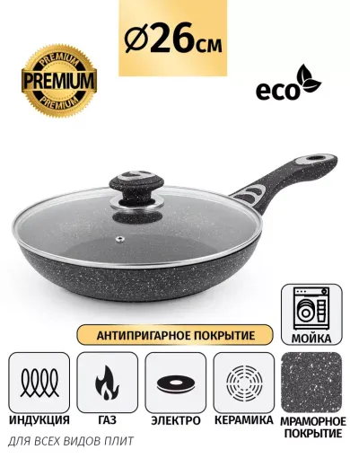 Сковорода с крышкой Royalty Line 26 см с мраморным покрытие