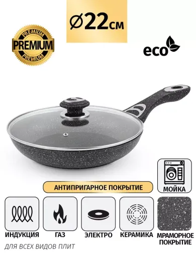 Сковорода с крышкой Royalty Line 22 см с мраморным покрытие