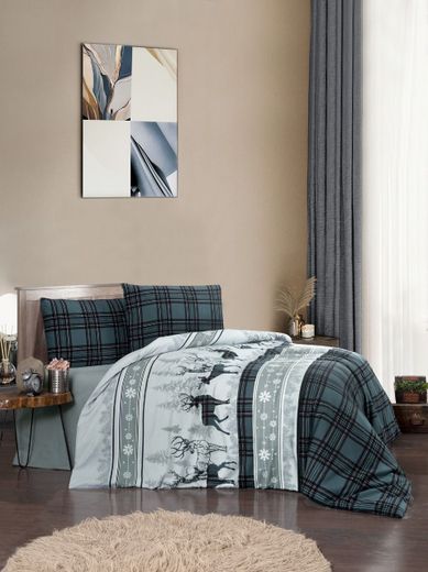 Фланелевое постельное бельё ОЛЕНИ Турция зеленый