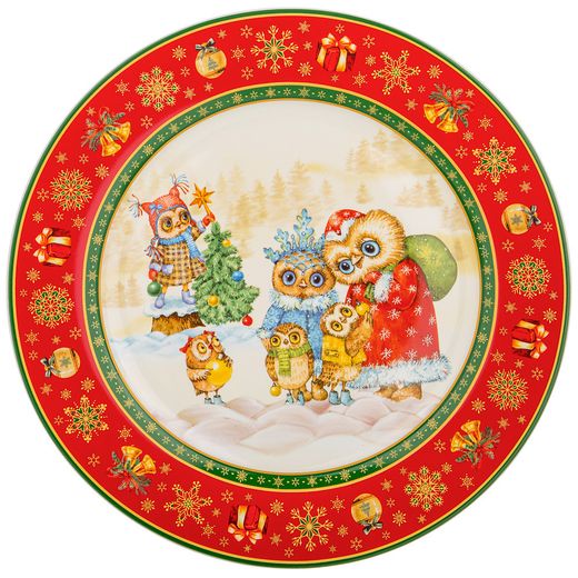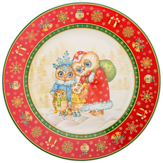ТАРЕЛКА ОБЕДЕННАЯ LEFARD "НОВОГОДНЯЯ СКАЗКА" СОВЫ 27 СМ КРАСНАЯ