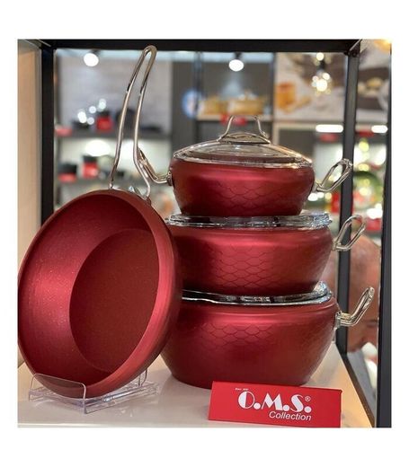 Набор из 7 пр - 3 кастрюли и и сковорода с а/п покрытием, красный/золотой O.M.S. Collection