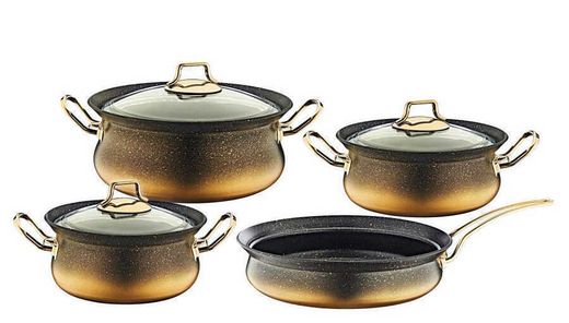 Набор из 9 пр - 3 кастрюли, сотейник и сковорода с а/п покрытием, золото O.M.S. Collection индукция