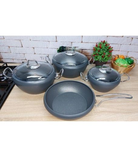 Набор из 7 пр - 3 кастрюли и и сковорода с а/п покрытием, серый/серебряный O.M.S. Collection