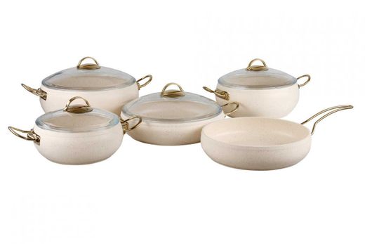 Набор из 9 пр - 3 кастрюли, сотейник и сковорода с а/п покрытием, айвори O.M.S. Collection