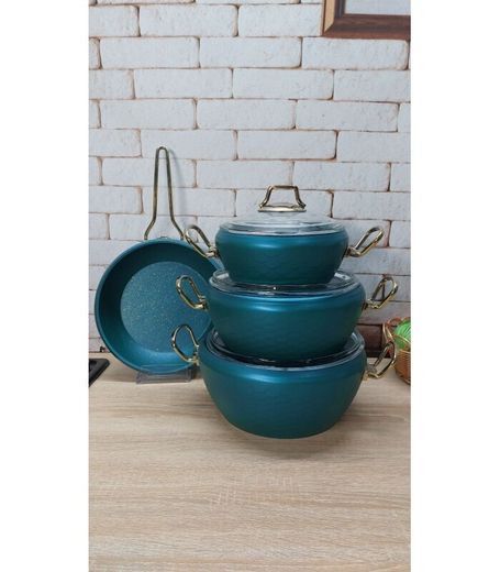 Набор из 7 пр - 3 кастрюли и и сковорода с а/п покрытием, ментоловый/золотой O.M.S. Collection