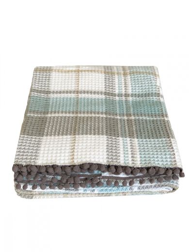 ПЛЕД AKSU "INKA" ХЛОПОК, ПОМПОН 1.5 СПАЛЬН. МЯТНЫЙ