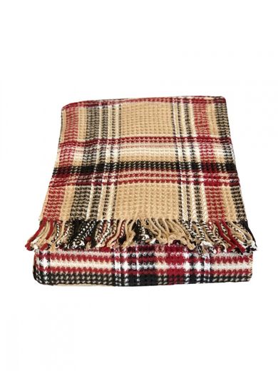 ПЛЕД AKSU "INKA" ХЛОПОК, БАХРОМА 1.5 СП. БЕЖЕВО-КРАСНЫЙ