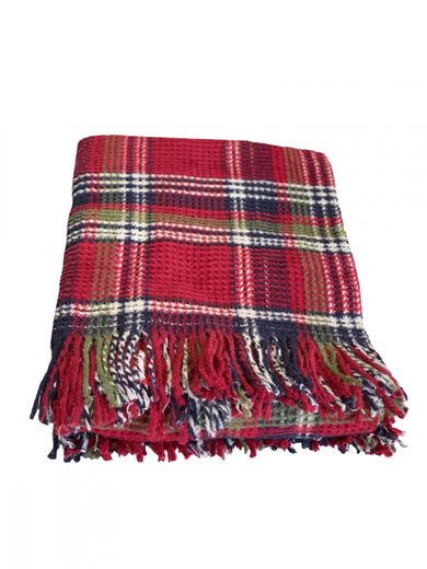 ПЛЕД AKSU "INKA" ХЛОПОК, БАХРОМА 1.5 СП. ЗЕЛЕНО-КРАСНЫЙ