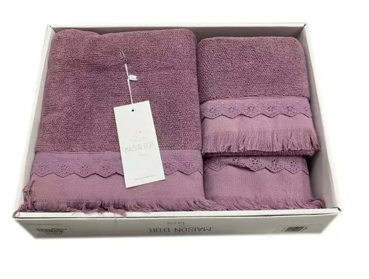 Подарочный набор полотенец с кружевом NEW TRENDY фиолетовый