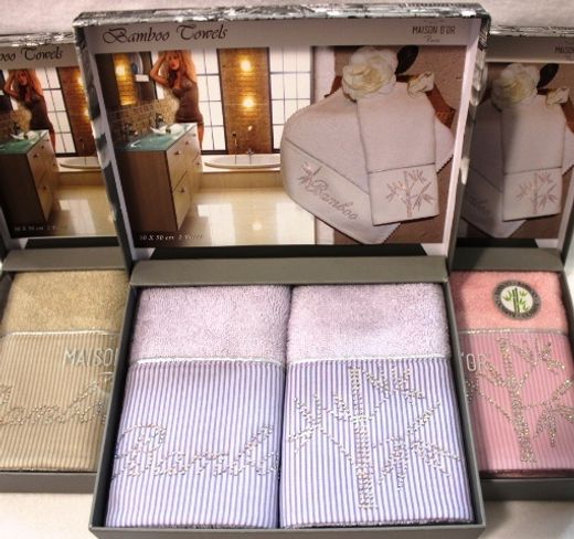 Подарочный набор махровых салфеток со стразами BAMBU - БАМБУ Maison Dor