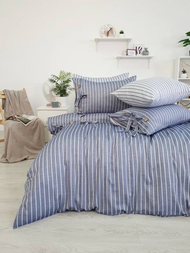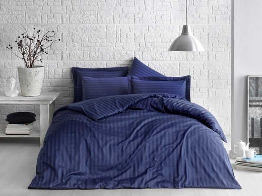 Комплект постельного белья Tivolyo home JACQUARD BANDED синий ЕВРО
