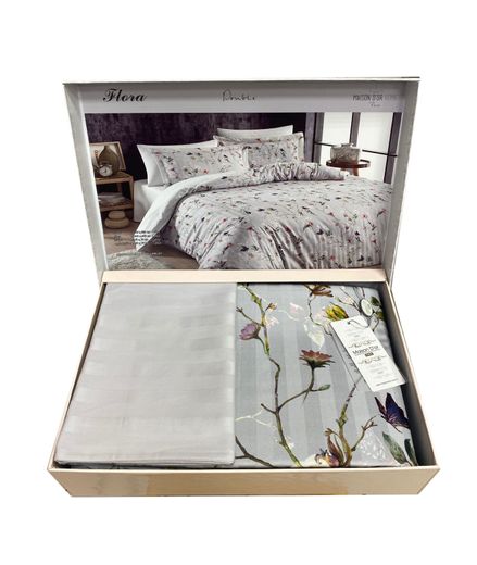 Постельное бельё 3D страйп-сатин Евро Flora Maison серый