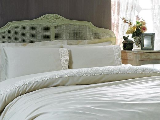 Сатиновое постельное бельё Евро, DIAMANT кремовое