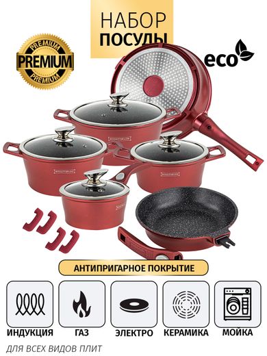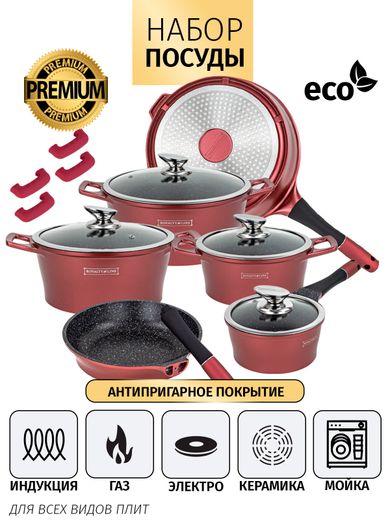Набор кастрюль с мраморным покрытием Royalty Line (Burgundy 14)