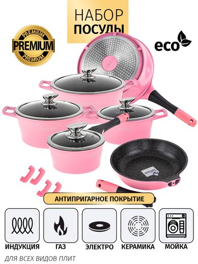Набор кастрюль, сотейник и 2 сковороды Royalty Line (Pink)