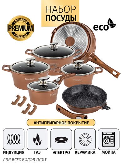 Набор кастрюль, сотейник и 2 сковороды Royalty Line (Copper)