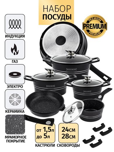 Набор кастрюль с мраморным покрытием Royalty Line (Black 14)