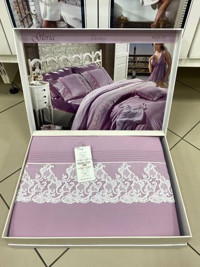 Постельное бельё сатин с кружевом Евро Gloriya Maison фиолетовое