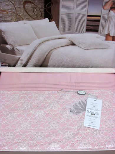 Постельное бельё с кружевом Евро Queen Maison пыльная роза