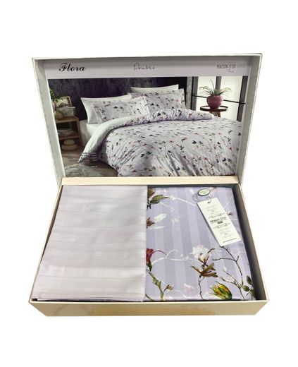 Постельное бельё 3D страйп-сатин Евро Flora Maison сиреневый