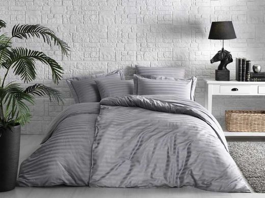 Комплект постельного белья Tivolyo home JACQUARD BANDED серый СЕМЕЙНЫЙ