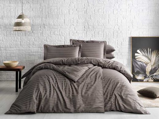 Комплект постельного белья Tivolyo home JACQUARD BANDED коричневый СЕМЕЙНЫЙ
