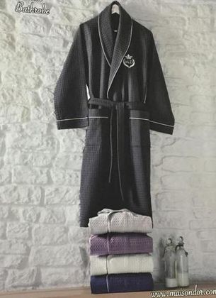 Прекрасный вафельный халат для мужчины в наборе с полотенцами. Состав 100% натуральный хлопок высокого качества. Халат отлично впитывает, очень красивый. Элегантная отделка кантом, стильная вышивка.