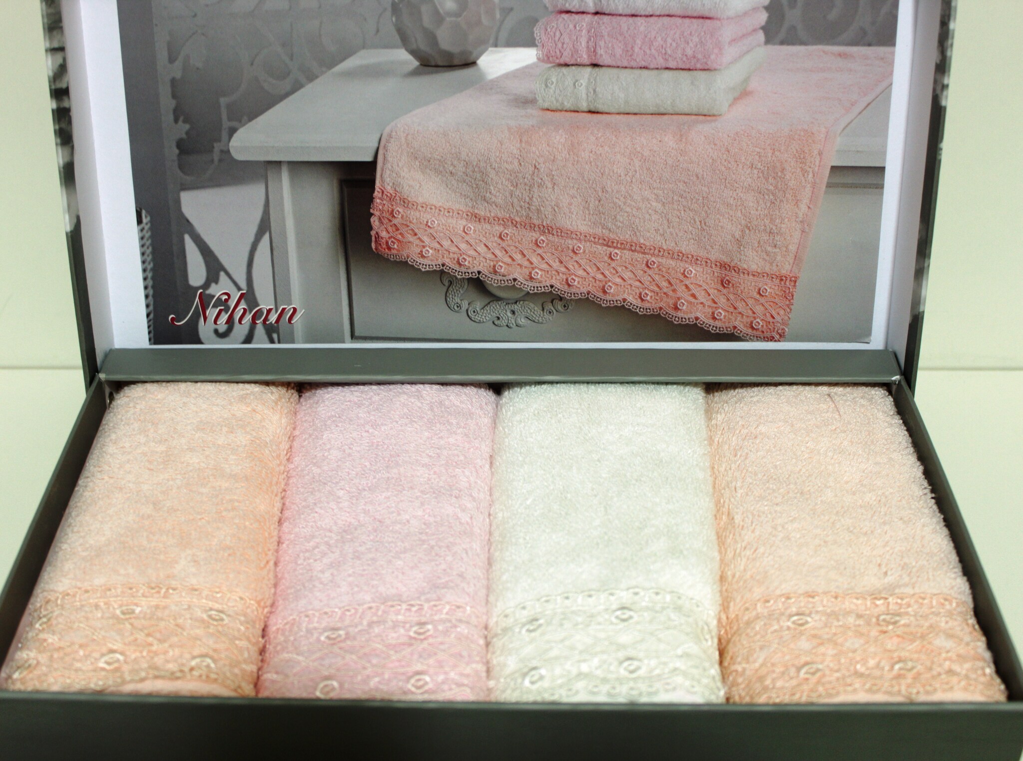 Подарочный набор кухонных махровых салфеток с кружевом NIHAN - НИХАН Maison Dor