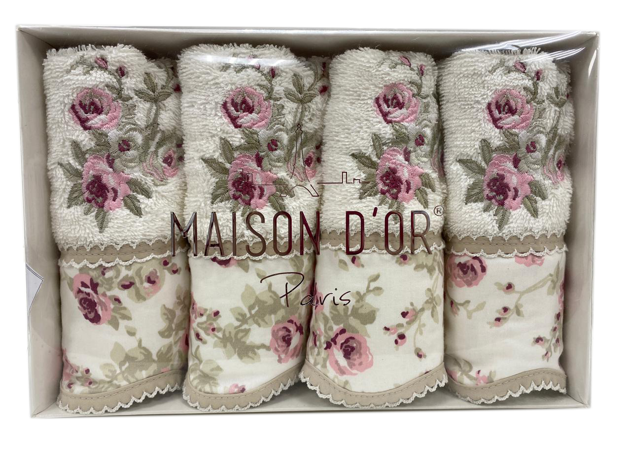 Чудесный набор из 4 небольших махровых полотенец-салфеток с вышивкой и цветочным принтом от известного турецкого бренда Maison Dor изготовлены 100% хлопока.