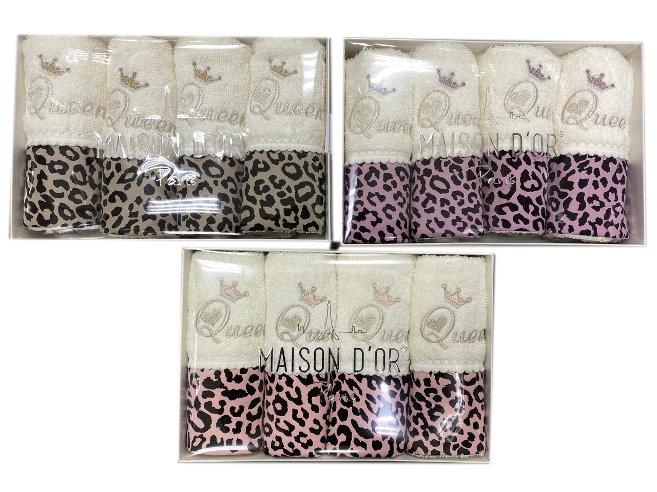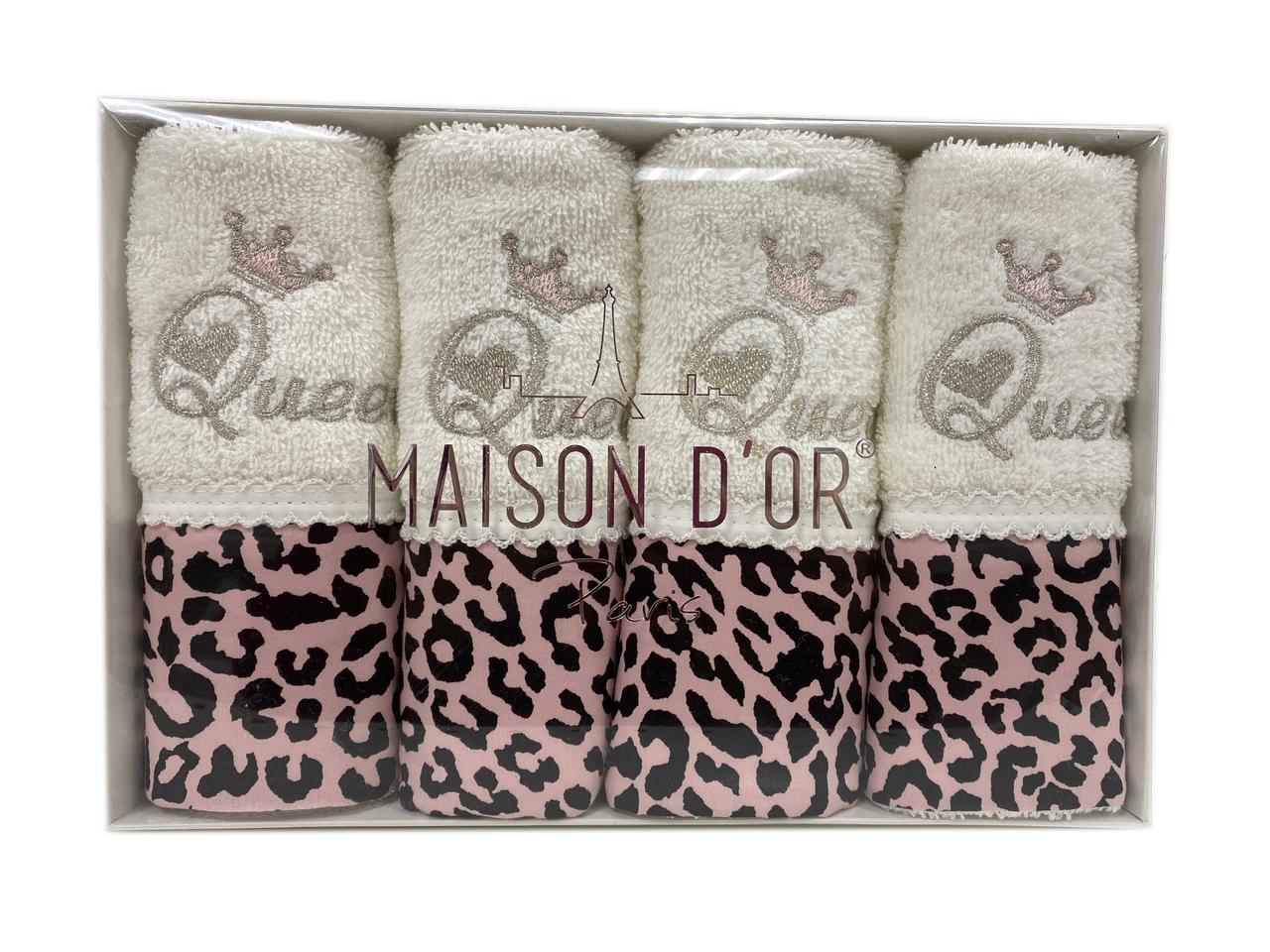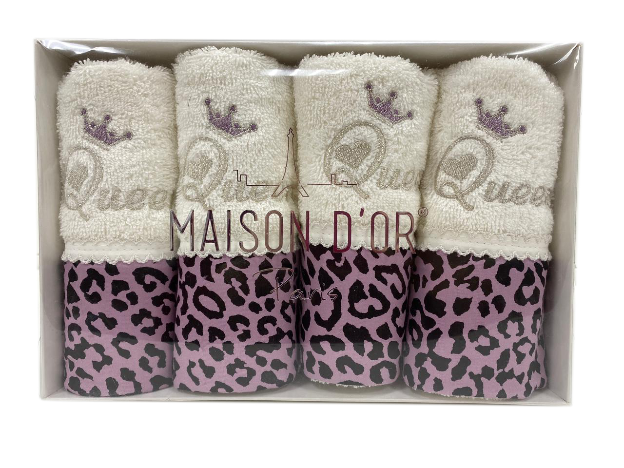 Чудесный набор из 4 небольших махровых полотенец-салфеток с вышивкой и леопардовым принтом от известного турецкого бренда Maison Dor изготовлены 100% хлопока.