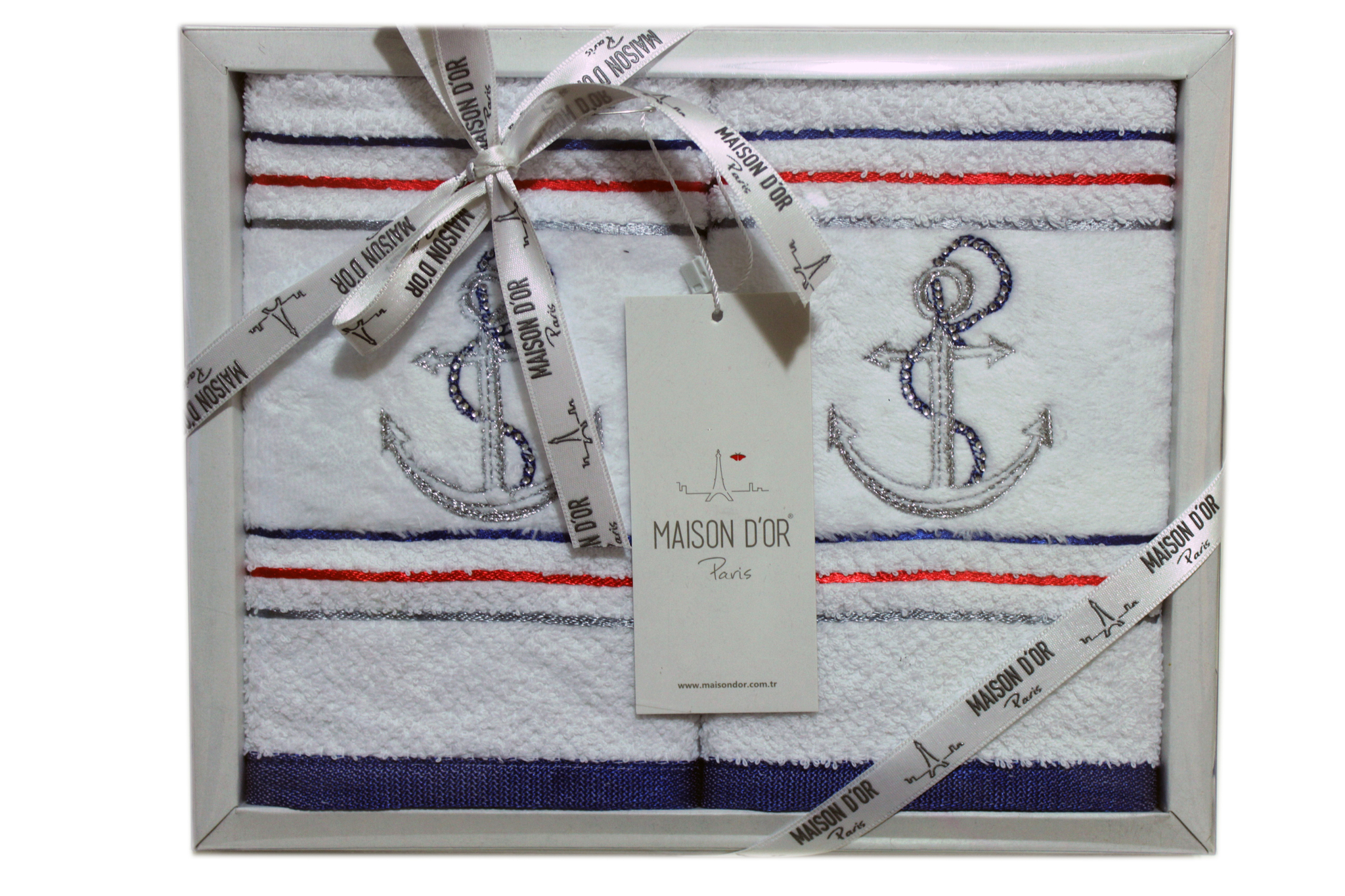 Чудесный набор из 2 небольших махровых полотенец-салфеток с вышивкой и стразами в подарочной коробке.