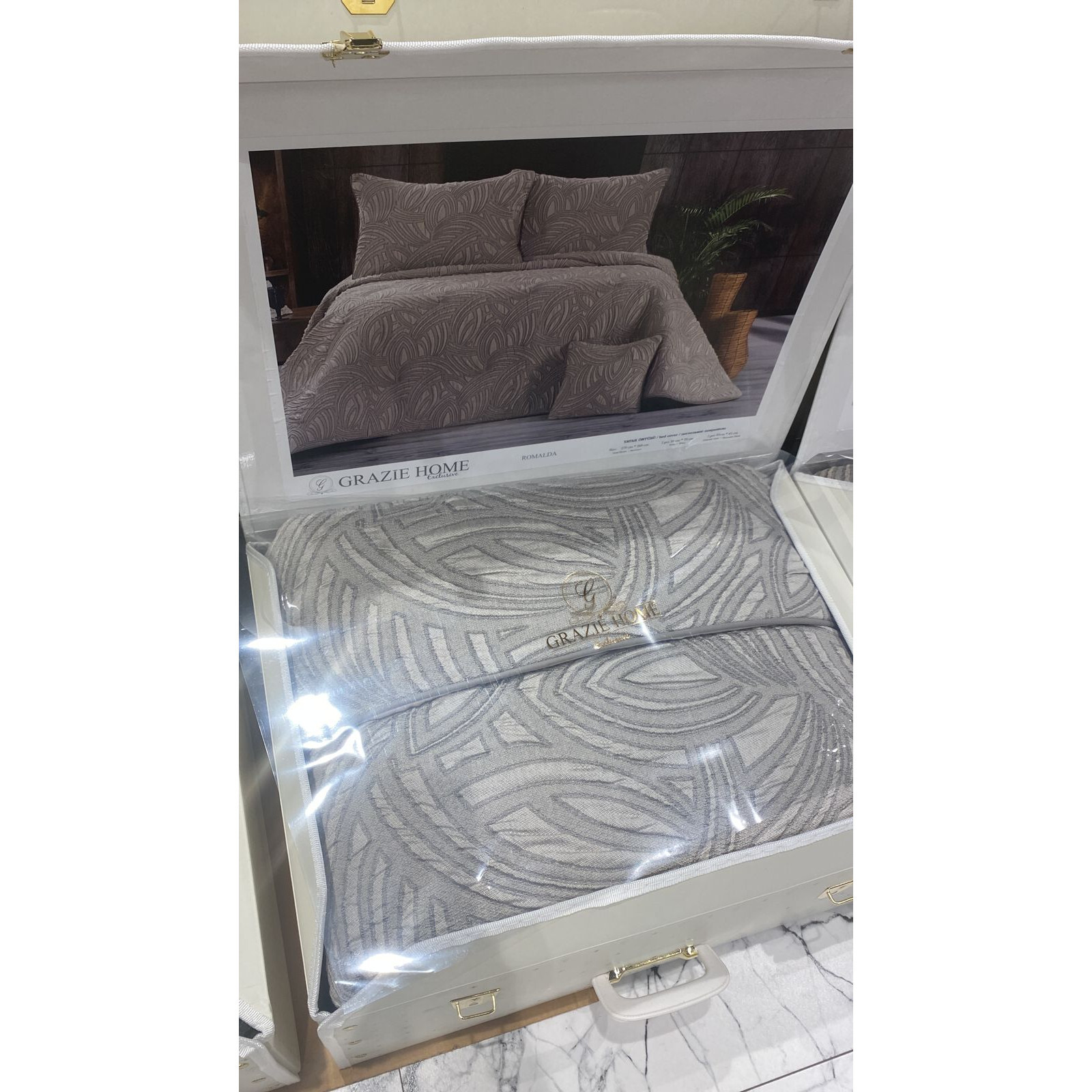 Элитные жаккардовые покрывала от турецкого производителя Grazie Home превратят даже обычную спальню в королевские покои. Изысканный орнамент в восточном стиле, мягкость и практичность тканей, цветовая гамма в спокойных оттенках, подходящая под любой интерьер, а так же наволочки в аналогичном дизайне - все это добавит уюта Вашей спальной комнате. Комплект в фирменном стилизованном сундуке станет прекрасным подарком на любое торжество или займет достойное место в коллекции домашнего текстиля.