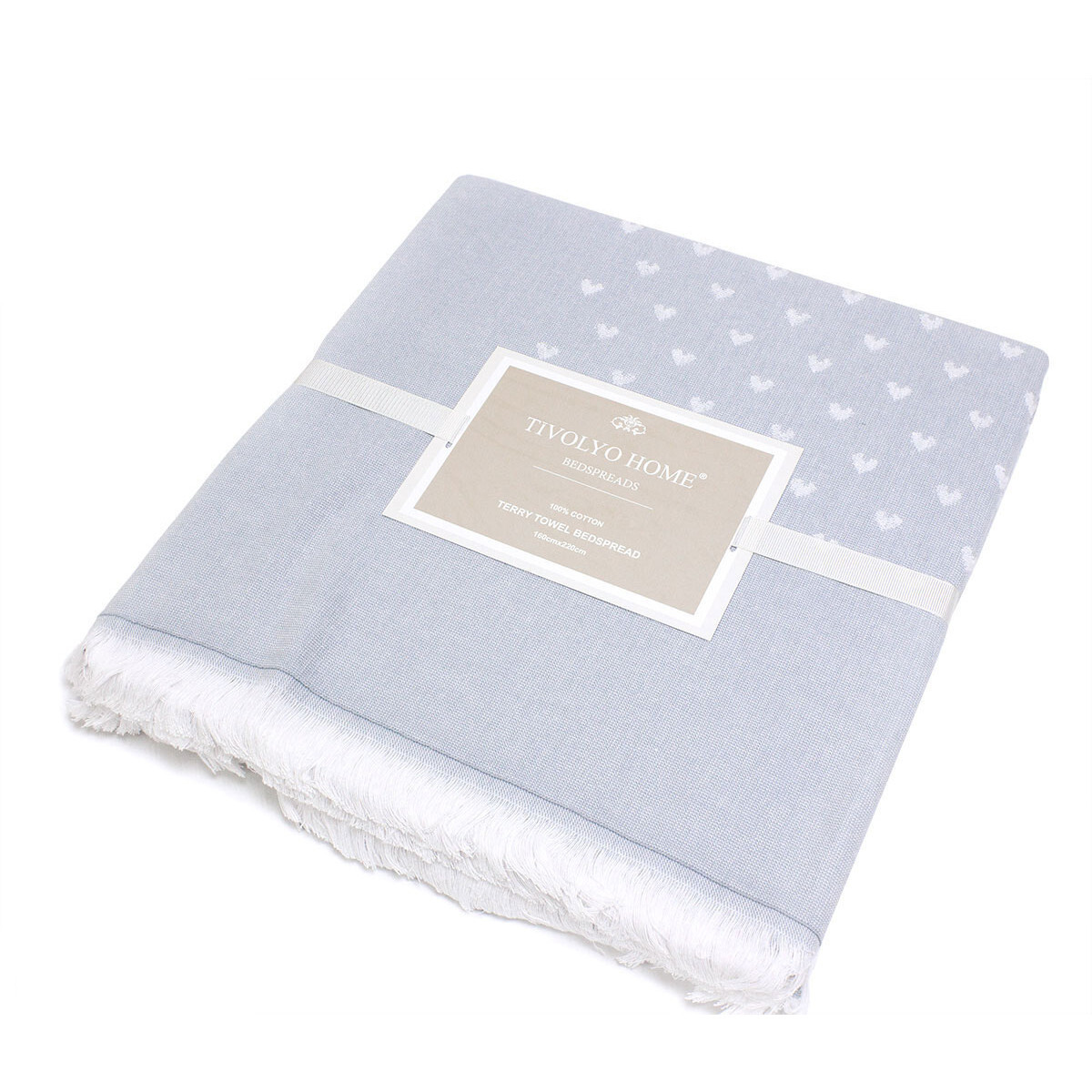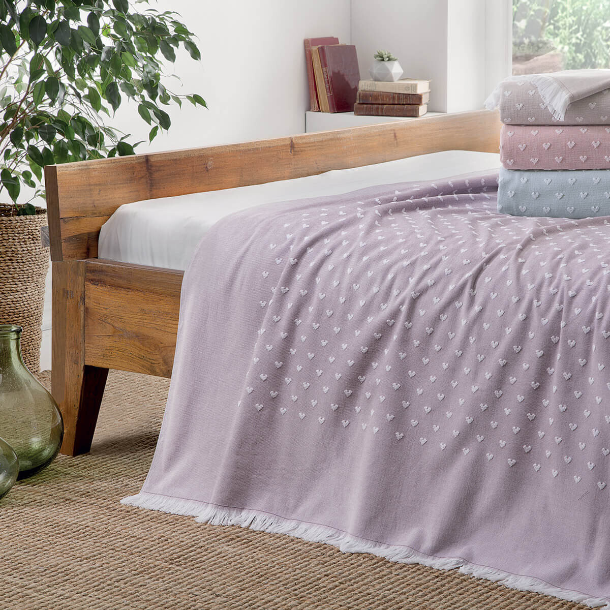 Покрывало дополнительно украшено бахромой и выпускается в нескольких цветах. Идеальный вариант для укрывания в летний период.