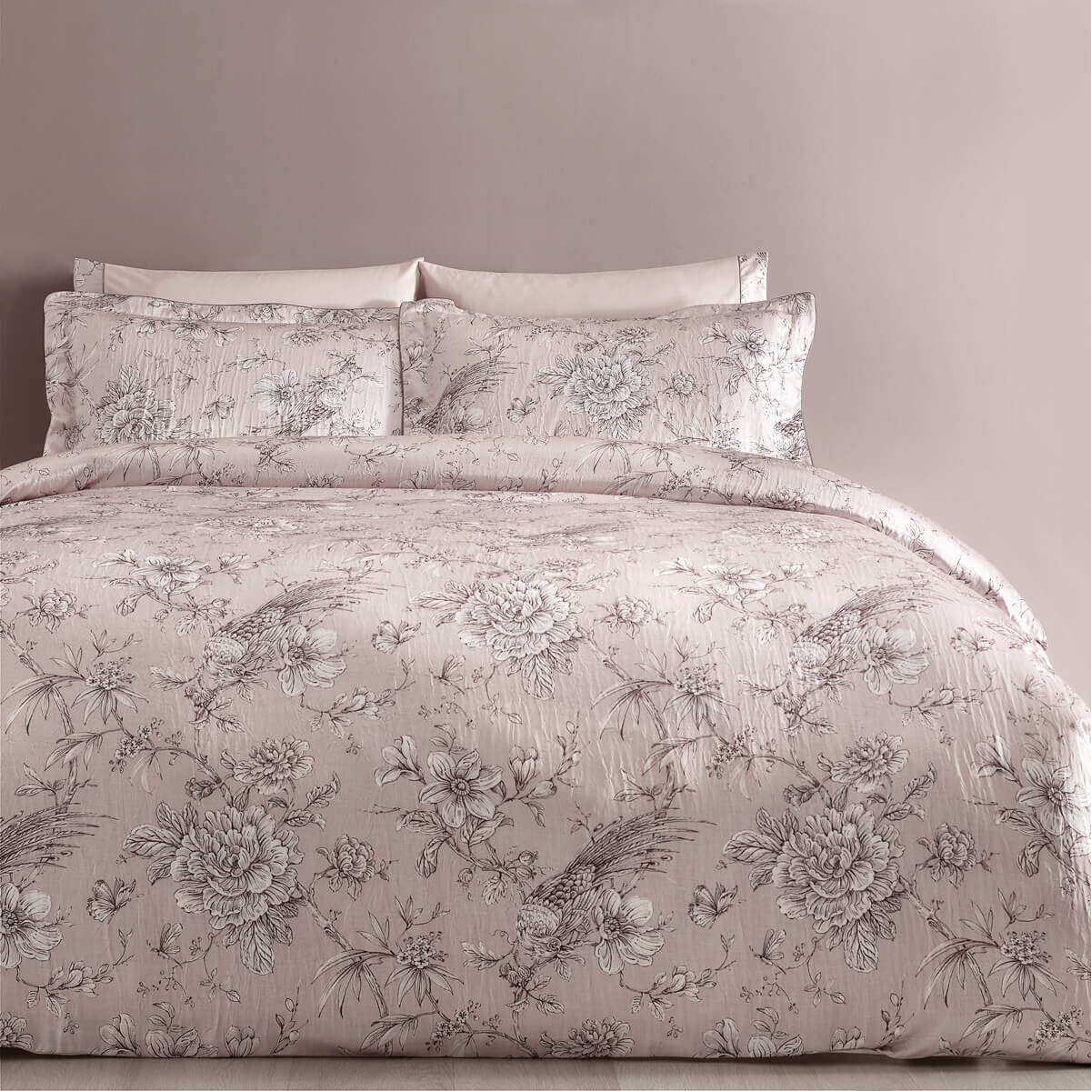 Внутренняя сторона пододеяльника, простыня и две наволочки выполнены из сатина де люкс, а лицевая сторона пододеяльника и две другие наволочки — из «жатого шелка». Изделия бережно сложены в подарочную упаковку с логотипом фирмы.