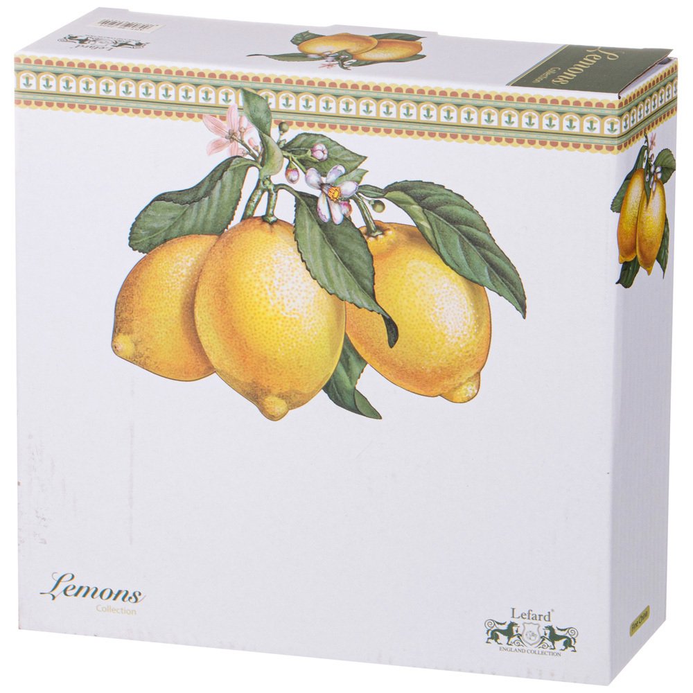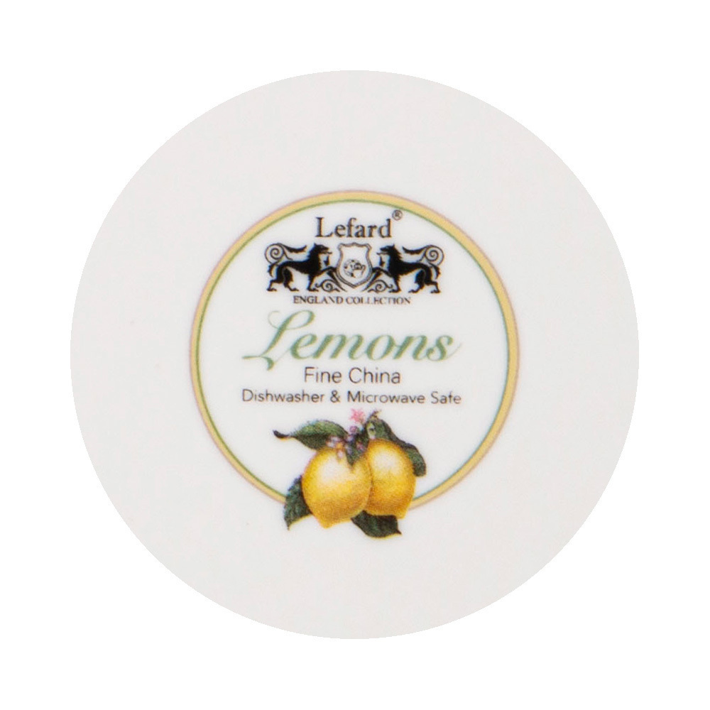 ТМ LEFARD авторская коллекция «Лимоны» - это вкус и элегантность в сервировке стола и несомненное украшение в интерьере кухни. Изделия выполнены из тонкого, легкого и прочного магнезийного фарфора, способны красиво звучать. При постукивании деревянной палочкой по стенкам фарфоровой чашки она отзовется долгим чистым звуком, как если бы вы держали в руке колокольчик. Красивая деколь, сочетающая оригинальный орнамент с выразительными лимонами. Натуральные, приятные глазу оттенки, всегда в тренде. Мягкие формы и удобные размеры и объемы посуды помогут сервировать стол и создадут непринужденную домашнюю атмосферу. Красочная упаковка. Прекрасный подарок. Продукция прошла сертификацию и безопасна для контакта с пищевыми продуктами. Можно смело мыть в посудомоечной машине с применением мягких моющих средств, использовать в микроволновой печи.