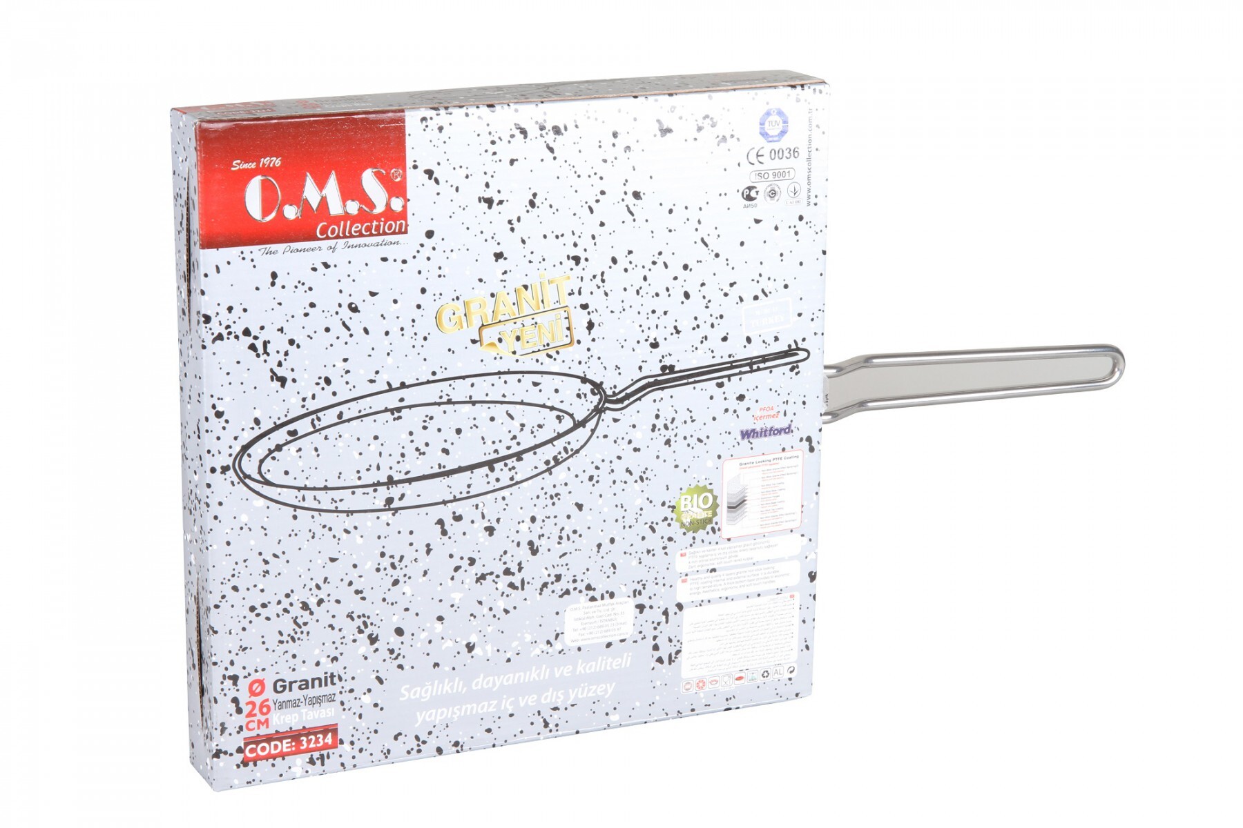 Сковорода блинная без крышки турецкой фирмы O.M.S. Collection изготовлена из высококачественного литого алюминия и трехслойного антипригарного гранитного покрытия Whitford Quantum2.