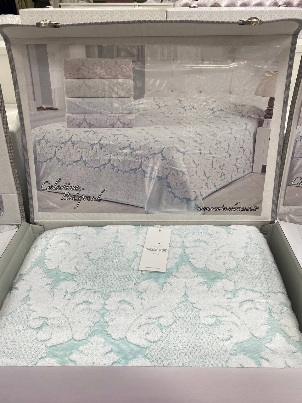 Жаккардовое махровое покрывало Селестина 220х240, бирюзовое